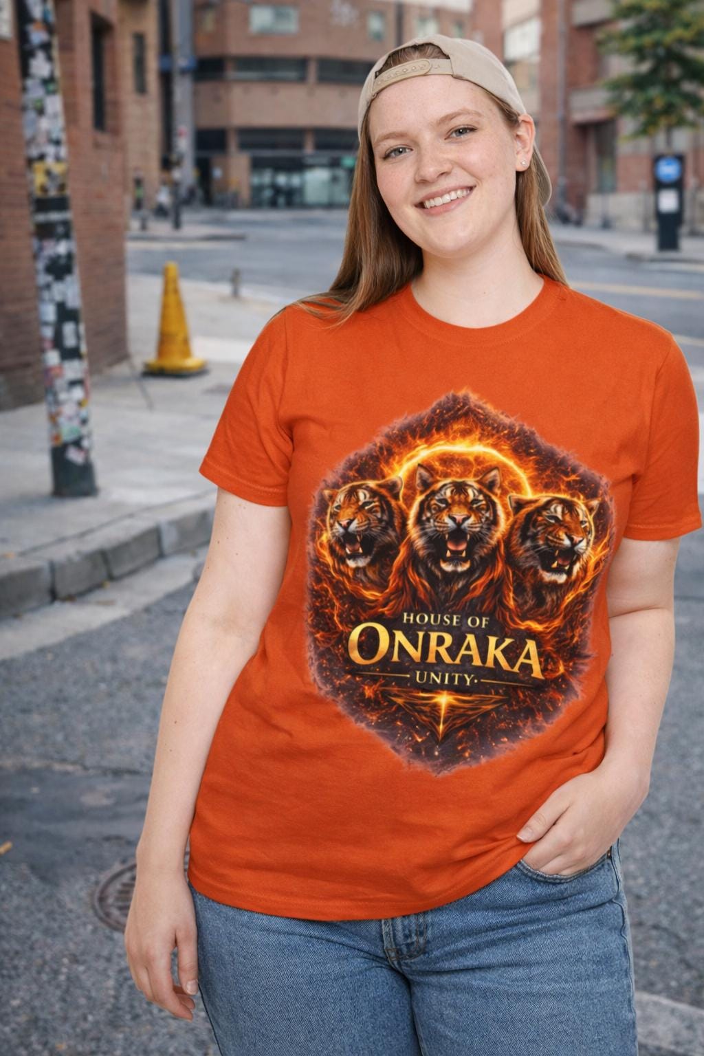 Show your fierce fantasy spirit with the House of Onraka Tigers T-Shirt, featuring a fiery triple tiger crest on a vibrant orange canvas. This lightweight, 100% ring-spun cotton tee offers a soft, smooth feel with a clean tubular knit silhouette and ribbed crew neckline for lasting shape and comfort.