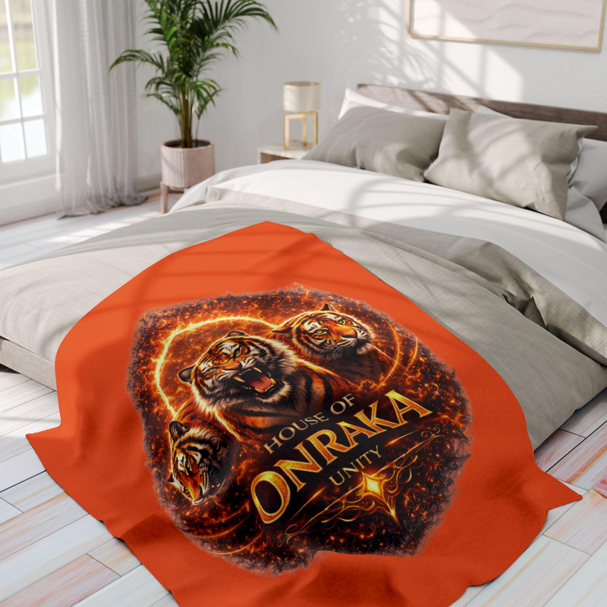 Arctic Fleece Blanket House of Onraka Unity Tiger Emblem Orange Roaring School Spirit Throw Classroom Student Gift RCA Inspired Merch Cover