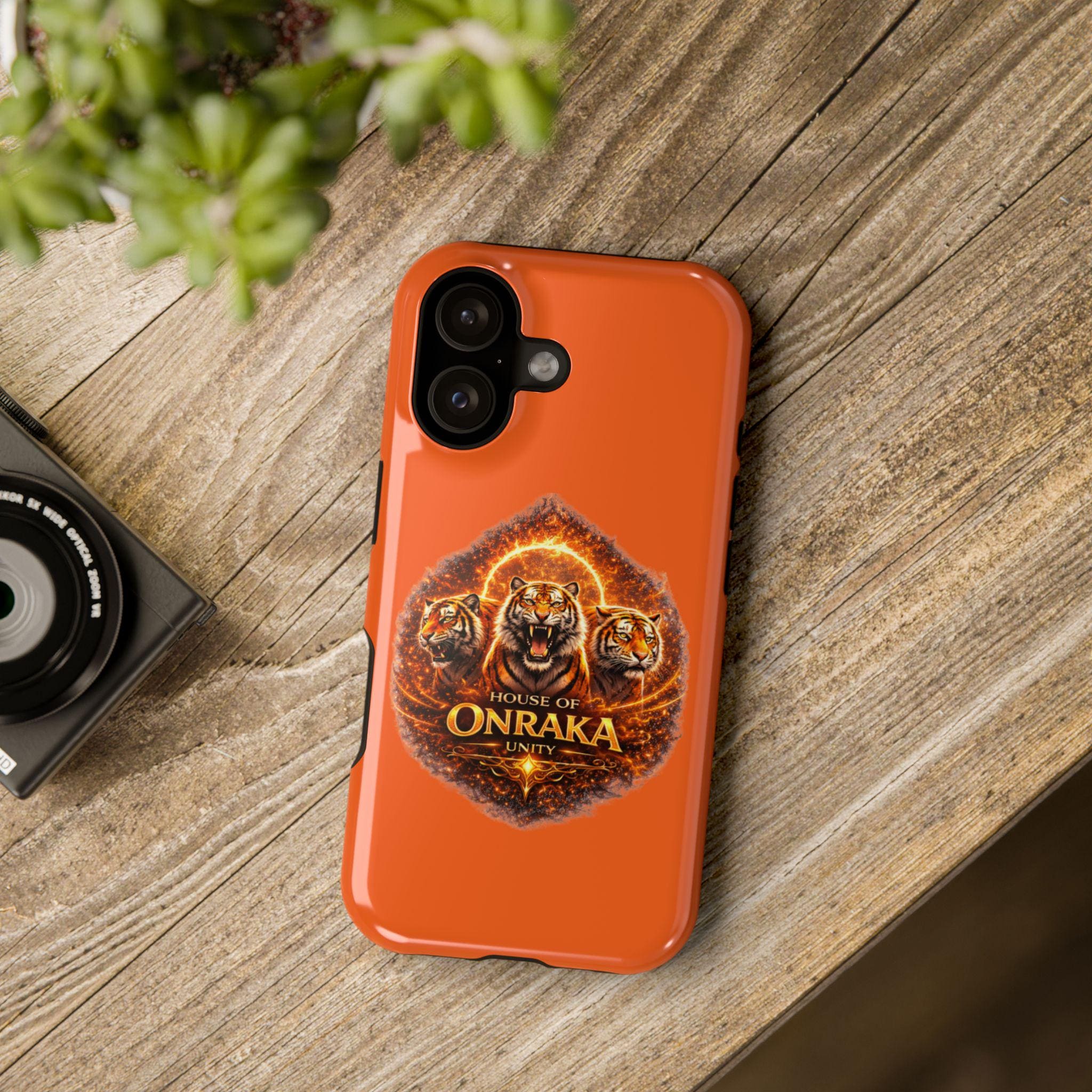 This impact-resistant phone case brings bold, protective style to everyday carry. The dual-layer construction — a rigid polycarbonate shell with a flexible TPU inner layer — absorbs shocks and shields your device from scratches and minor bumps while keeping wireless charging intact. The full-wrap, photo-realistic print showcases a fierce, emblem-style design centered on snarling tiger motifs and the words “House of Onraka,” rendered in rich, high-DPI color against a warm, matte or glossy orange background. Slim but sturdy, the case clicks on and off easily and keeps buttons accessible with precise cutouts. It’s crafted for adult users who want rugged protection without sacrificing standout graphics or color fidelity. Available for the newest iPhone 17 series and other models.