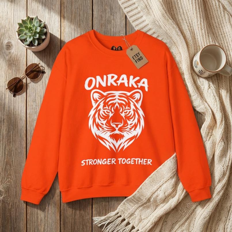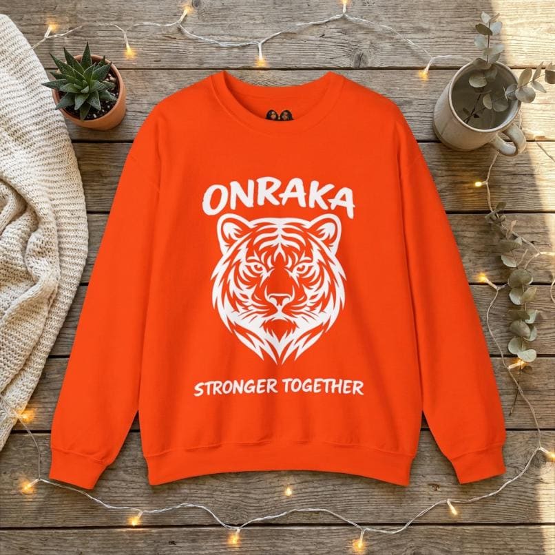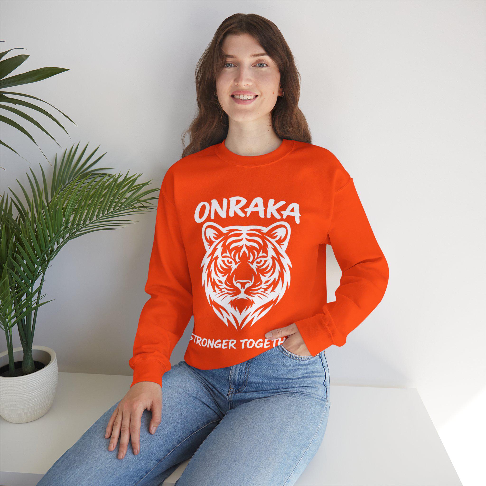 Show your House pride with this bold House of Onraka sweatshirt. Featuring the powerful Onraka tiger and the phrase “Stronger Together,” this design represents resilience, unity, and the strength that comes from standing together as one House.