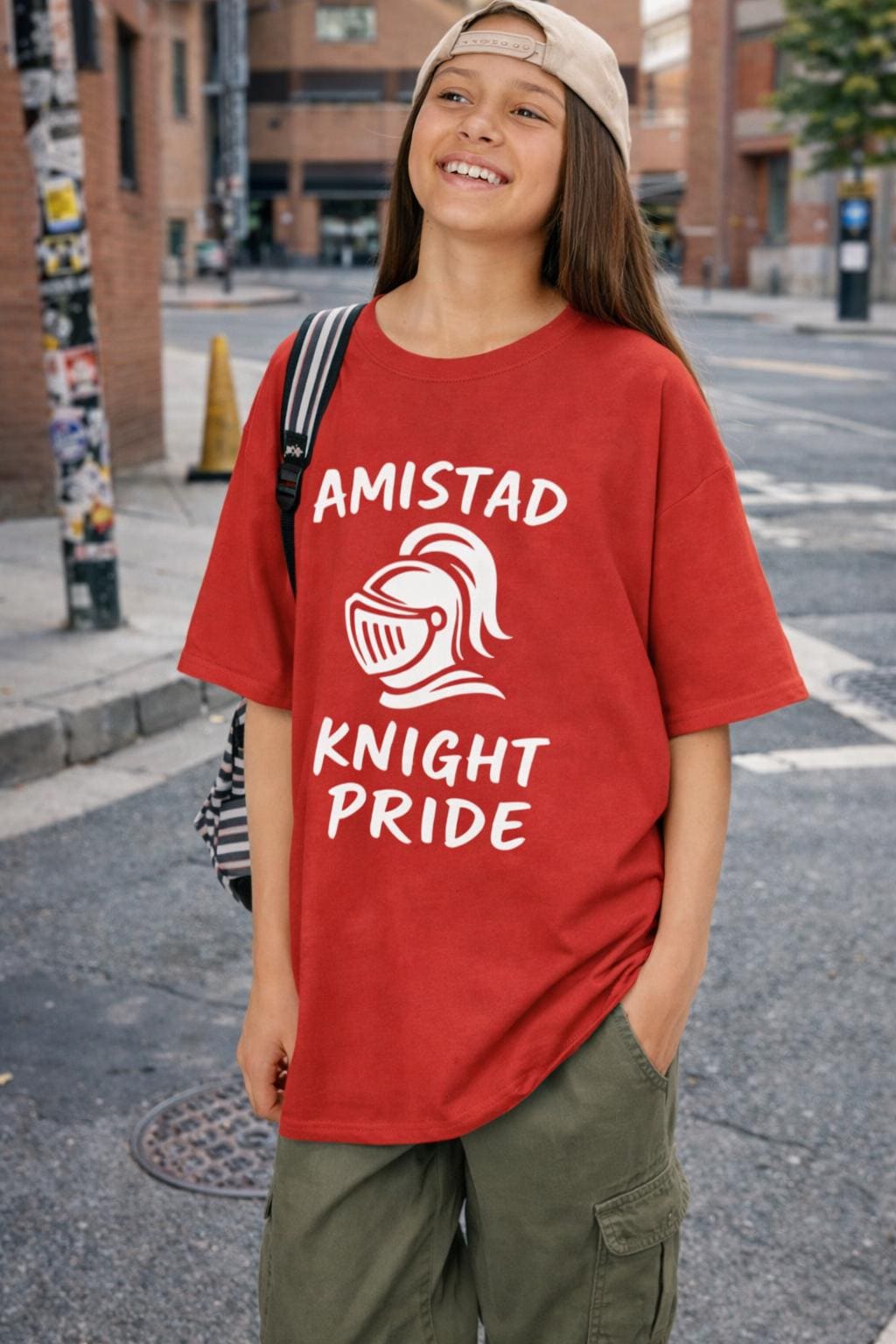 Celebrate friendship and school pride with the Amistad Knight Pride Kids T-Shirt, a perfect youth tee for students who value kindness and unity. This spirit shirt features the iconic Amistad knight design and promotes positive classroom culture and house system pride.