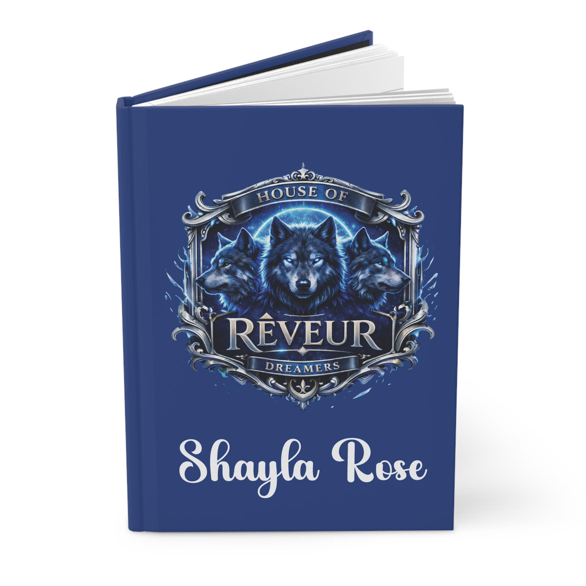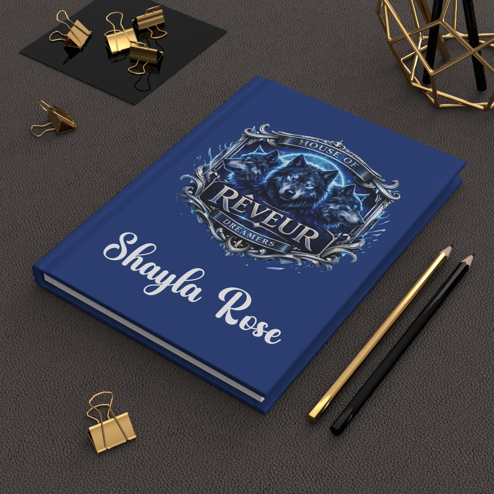 House of Rêveur Wolf Hardcover Journal Personalized Name Custom Back Cover Message Writing Notebook Gift for Writer Dreamer RCA Houses Lover