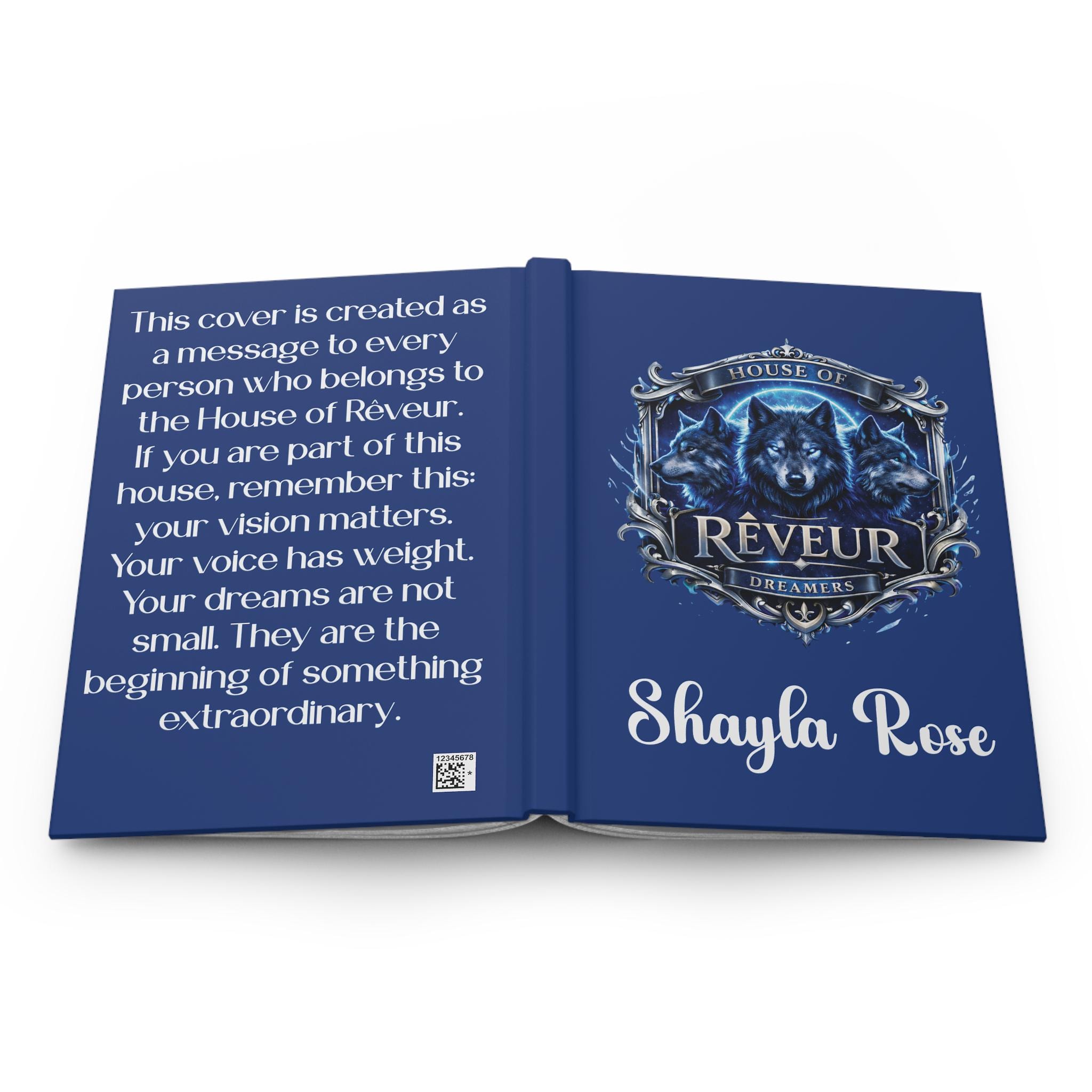 Celebrate imagination and house pride with this House of Rêveur wolf hardcover journal inspired by the RCA house system. Personalized with a custom name on the front and a meaningful message on the back cover, this writing notebook makes a thoughtful student leadership gift, graduation keepsake, or end of year house reward. Designed for reflection, goal setting, and creative expression, it’s a lasting reminder of what it means to belong to House of Rêveur.