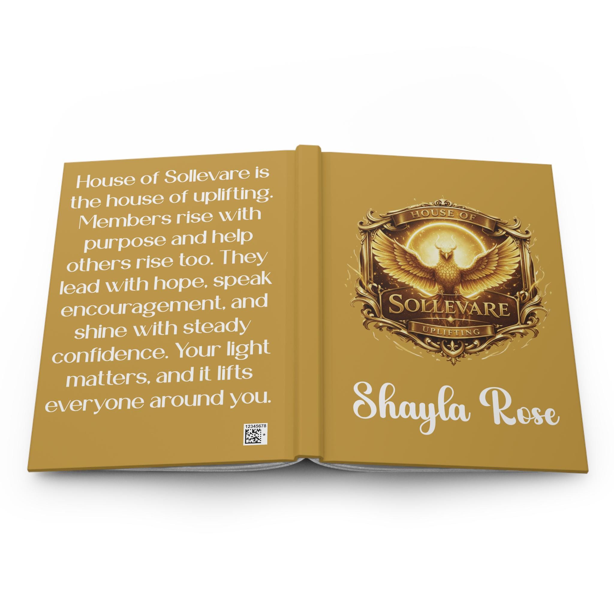 House of Sollevare Uplifting Hardcover Journal Personalized Name Custom Back Cover Message Writing Notebook RCA House System Inspired Gift